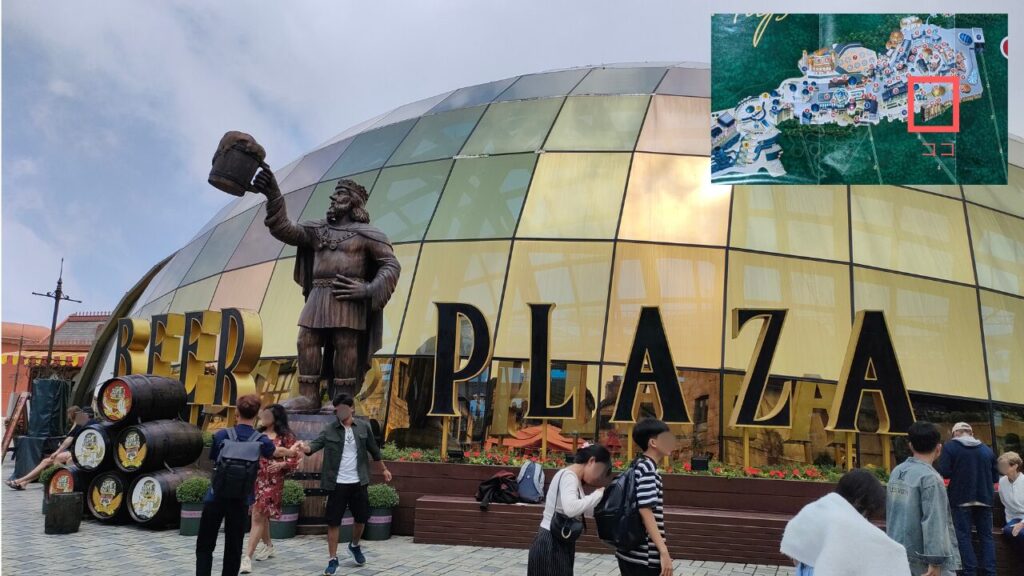 向かいにあるビアホール「Beer Plaza」と地下でつながっているので、どちらから入っても大丈夫です。
