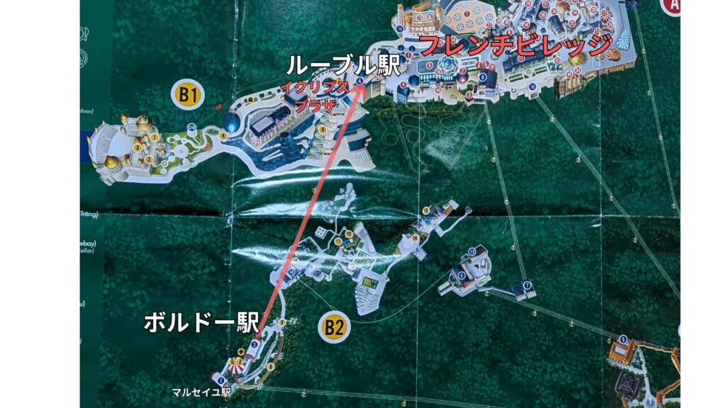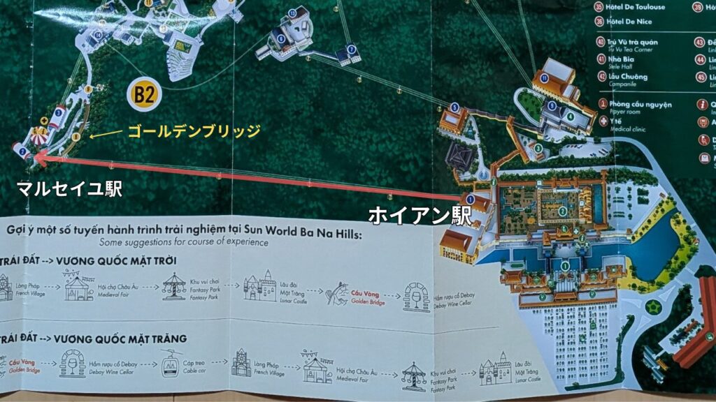 ロープウェイ乗り場(駅)はいくつかあるけど、ゴールデンブリッジへ行くには「ホイアン駅」から乗るしかないから、他の駅へ行ってしまわないように注意!