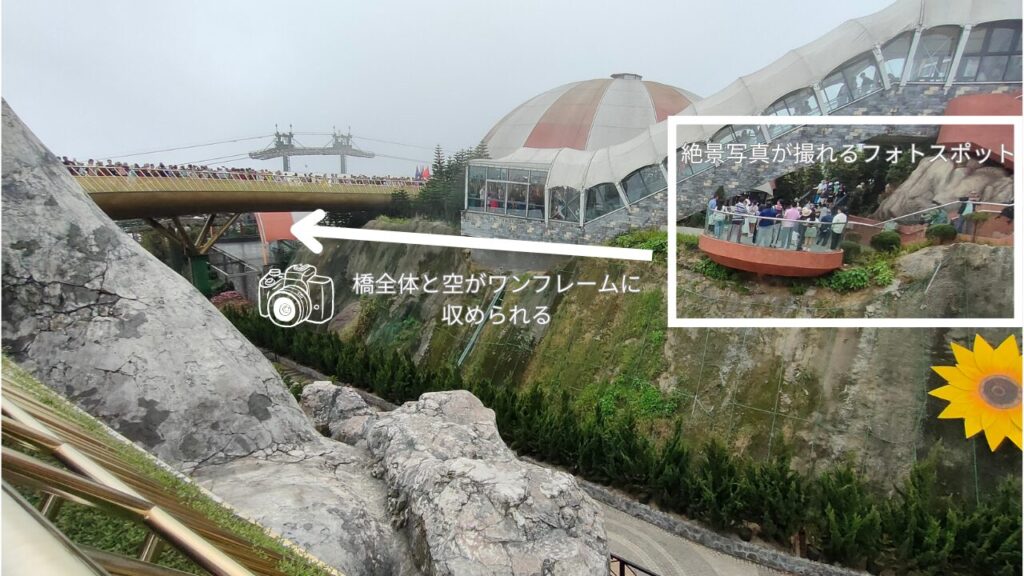 橋の上で撮影すると、神の手が近すぎて全体が映らない。