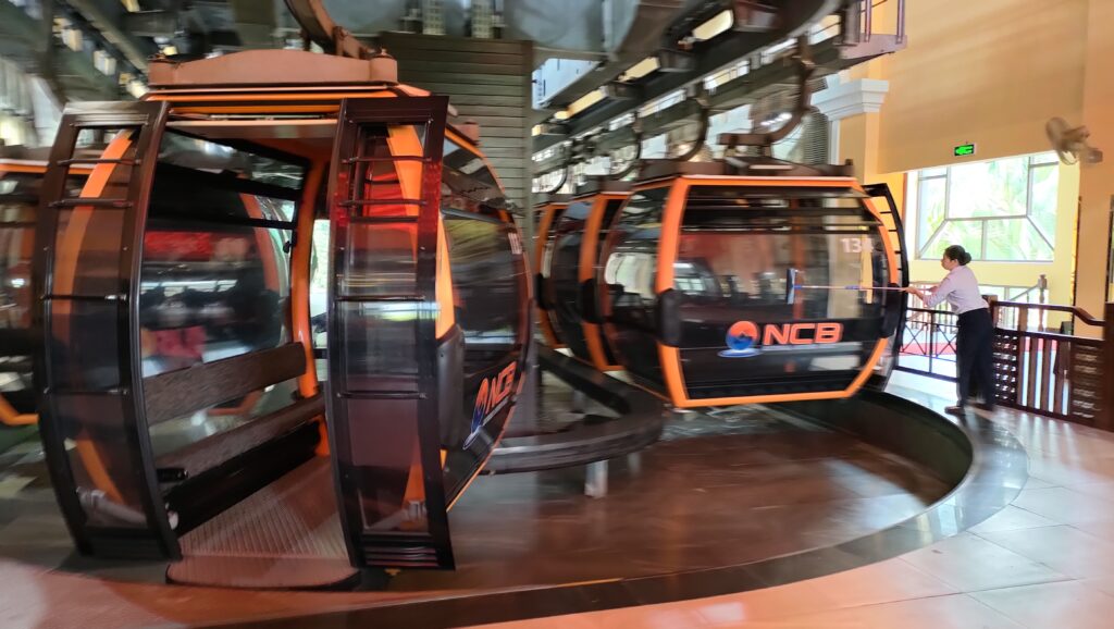 入場ゲートを入ってエスカレーターを登り、左奥の方へ歩き続けると現れる「ホイアン駅」からロープウェイに乗車。