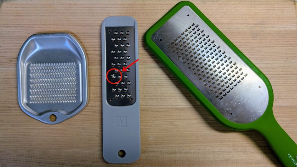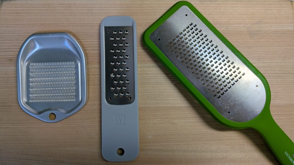 百均のおろし金、ZWILLINGのグレーター、VICTRINOXのグレーターの使用感を比較。